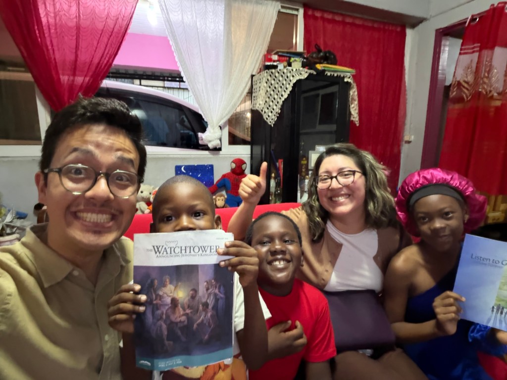 Friday we did informal witnessing at a mall in Paramaribo. Not the nicest mall, but the young ones we were working with suggested we go there. We had an amazing conversation with a woman working at the perfume vendor. She used to study the Bible with witnesses, but there were a few things that she didn’t agree with like the blood issue and why God allows suffering. We shared some scriptures with her about how Jehovah really feels when we suffer and that not only will he heal us physically, but emotionally he can undo our trauma. She really appreciated that, and briefly we talked about our options we have personally chosen as far as medical procedures involving our own blood. Her eyes lit up as we talked with her, and she said we can visit her again. And when we left the mall, we thanked the two young ones we were with for suggesting we go there—Jehovah used them because we would not have decided to go there!